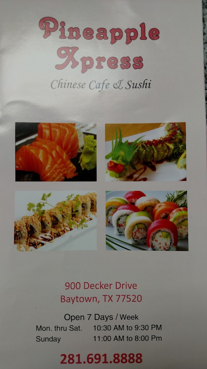 If you’re craving bold flavors and generous portions, the Pineapple Xpress Chinese Cafe Menu is where things get interesting. Tucked away at 900 Decker Dr, Baytown, TX 77520, this spot serves up all the comforting Chinese takeout classics you’d expect-plus a few house favorites that locals keep coming back for.